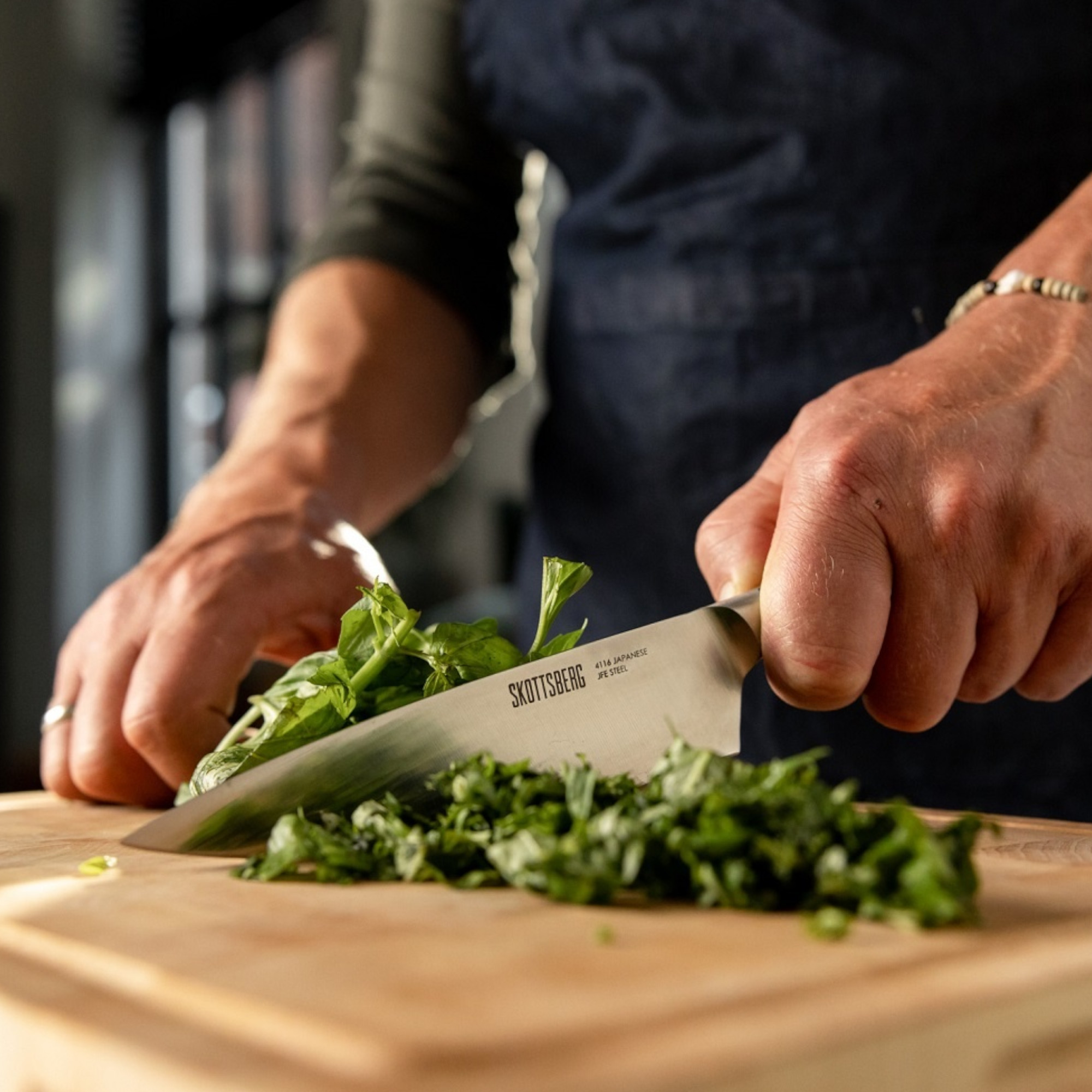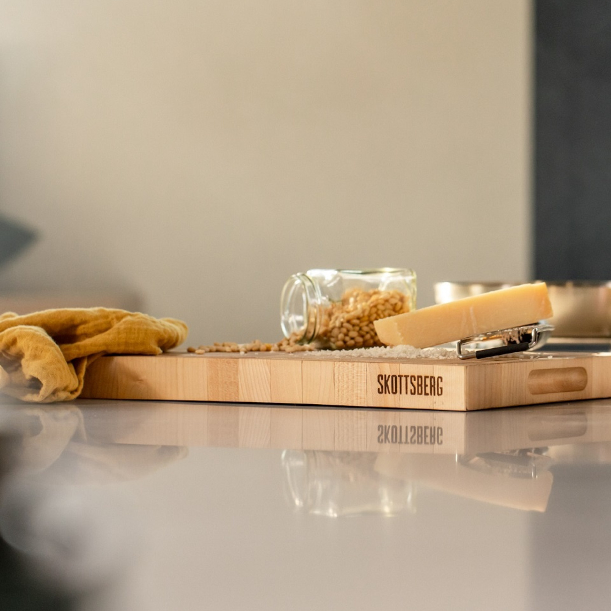 Das Skottsberg Schneidebrett Wood Works ist aus endgesägten Holzstücken gefertigt, die miteinander verleimt werden. Diese Konstruktion verleiht dem Brett eine unvergleichliche Stabilität und Langlebigkeit, so dass es selbst intensivem Gebrauch in professionellen Küchen mühelos standhält.
