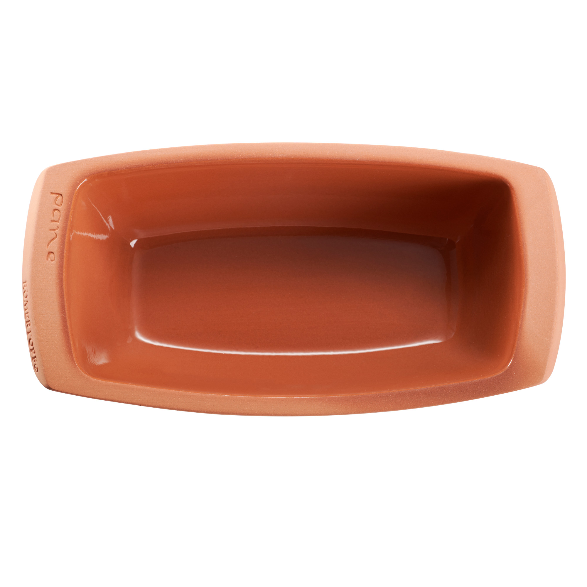 In Bezug auf das Aussehen hat die Backform eine Farbe von Terracotta, was ihr eine rustikale Note verleiht. Ohne Deckel hat sie eine offene und einladende Form, die dazu einlädt, selbst gebackenes Brot oder Kuchen hineinzulegen.