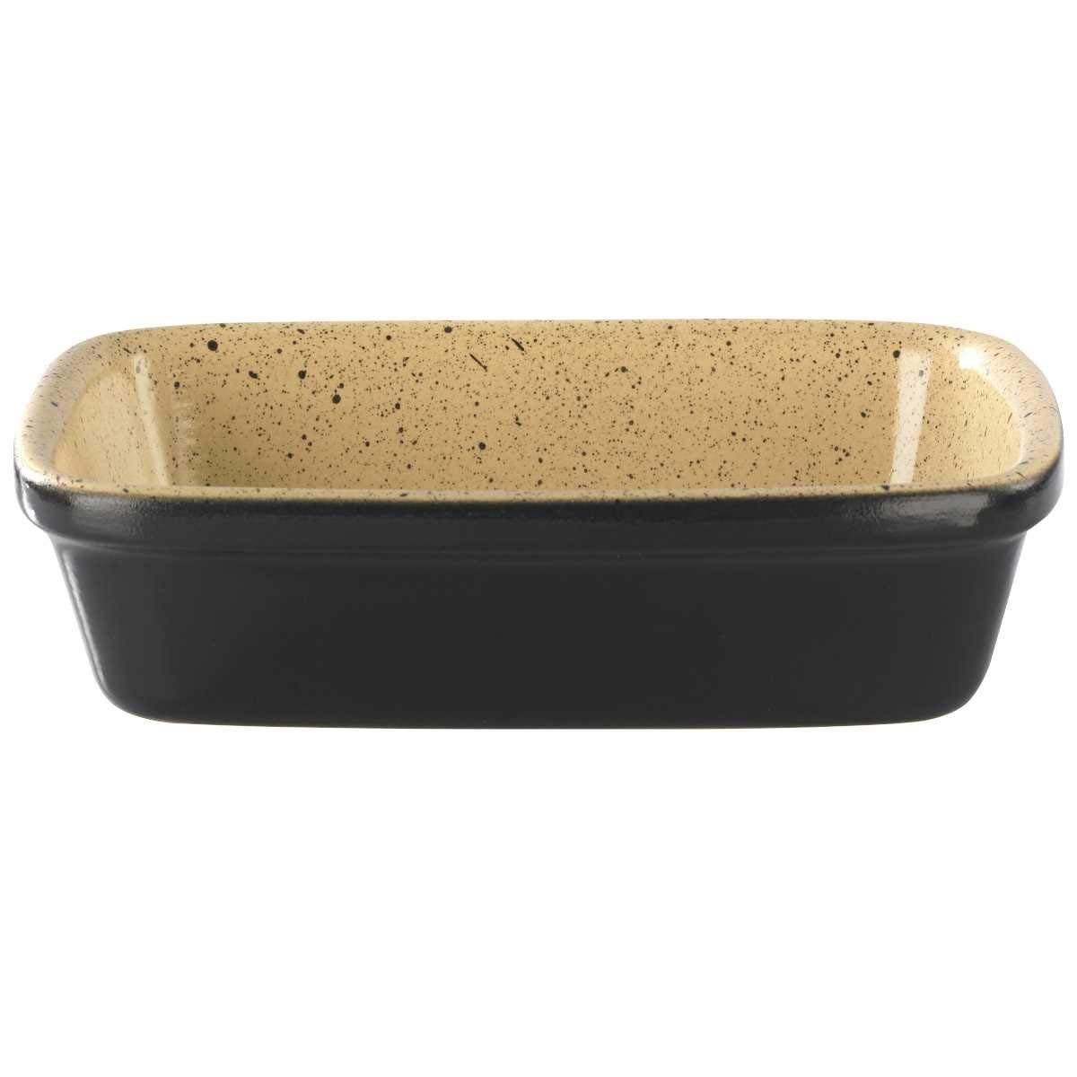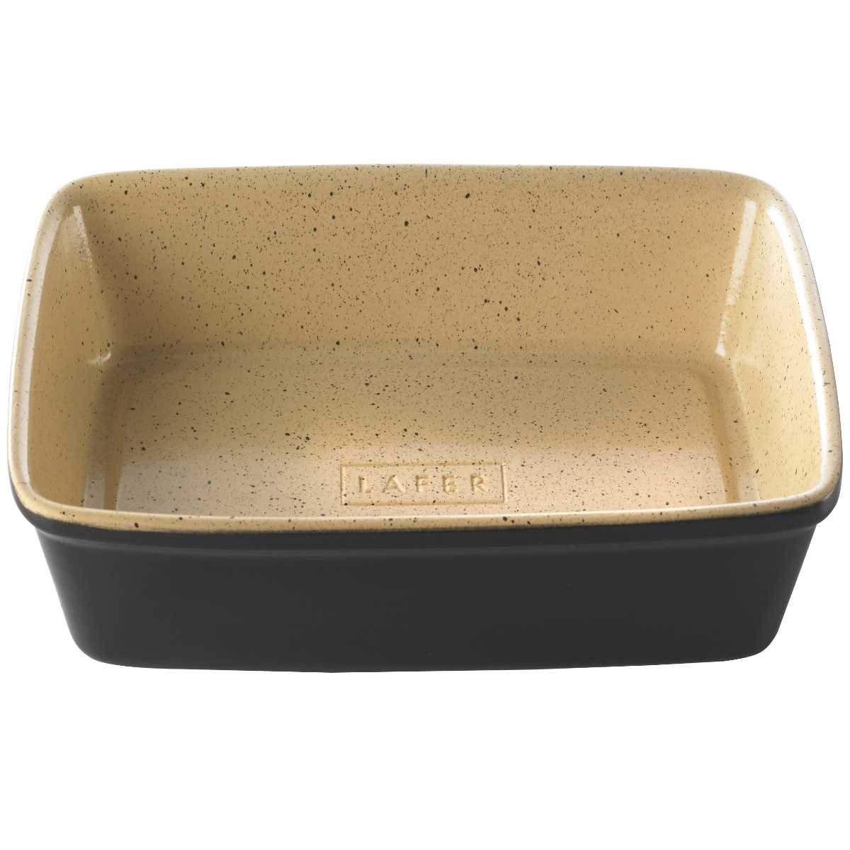 Ein besonderes Highlight ist der extra-breite Griff, der für sicheres Handling sorgt. Hergestellt aus feuerfestem Ton, glänzt die Schale außen in schwarz und innen in transparent-natur glasiert.